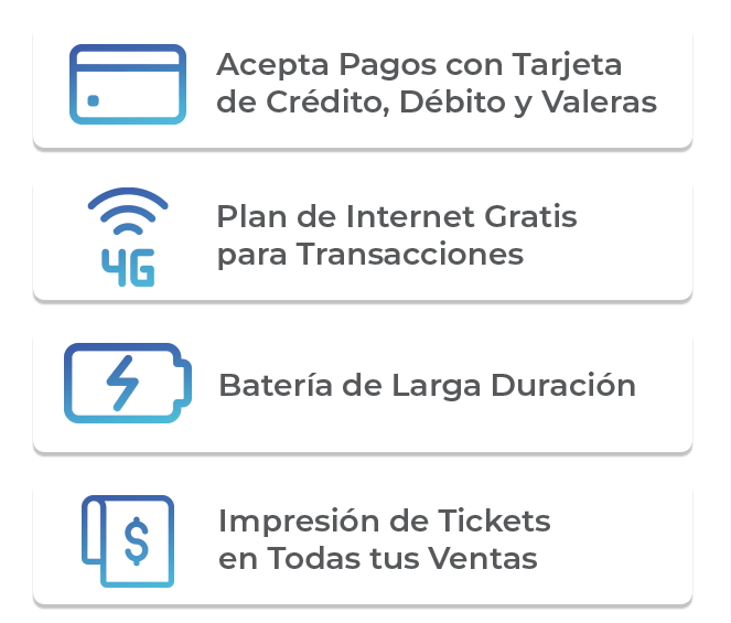 Acepta tarjetas de banda magnética, tan solo desliza la tarjeta por un lado de la terminal y procesa el pago.
